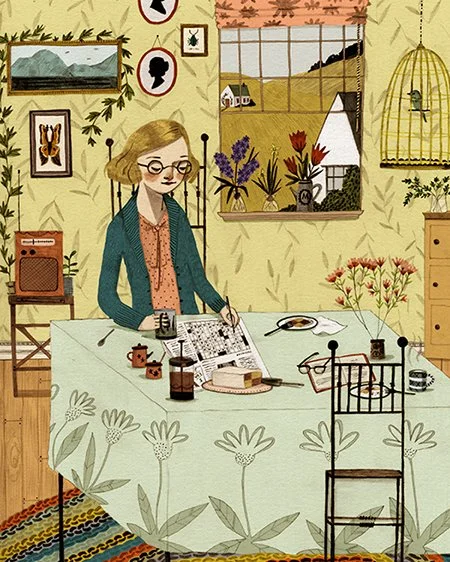 Last month I finally found the time to finish this crossword aficionado. It's funny when you step back from a piece and realize the parts of your life that get subconsciously added to a drawing.
